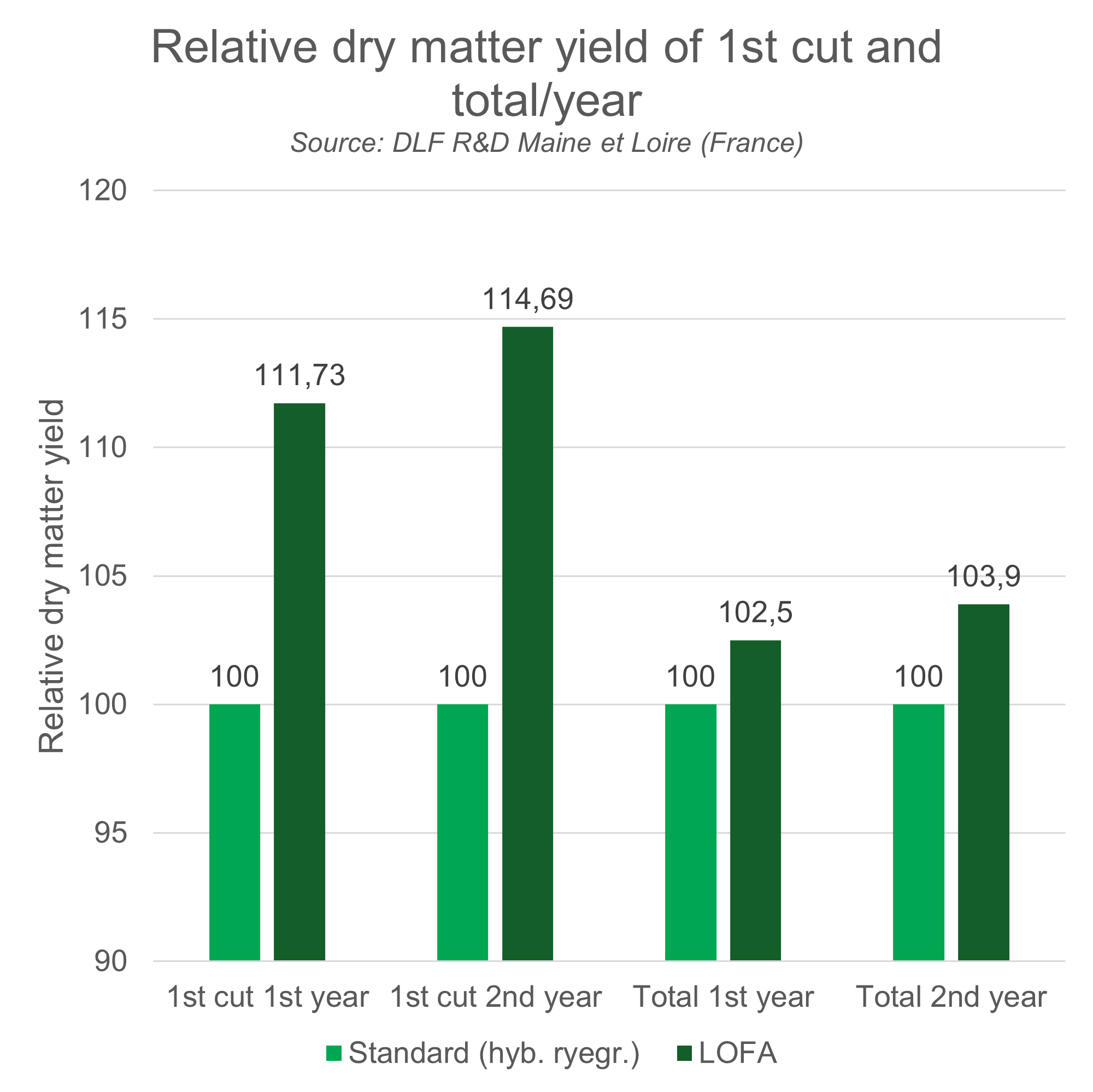 Source: DLF R&D Maine et Loire (France)| standard (hyb. ryegr.) | Lofa | |