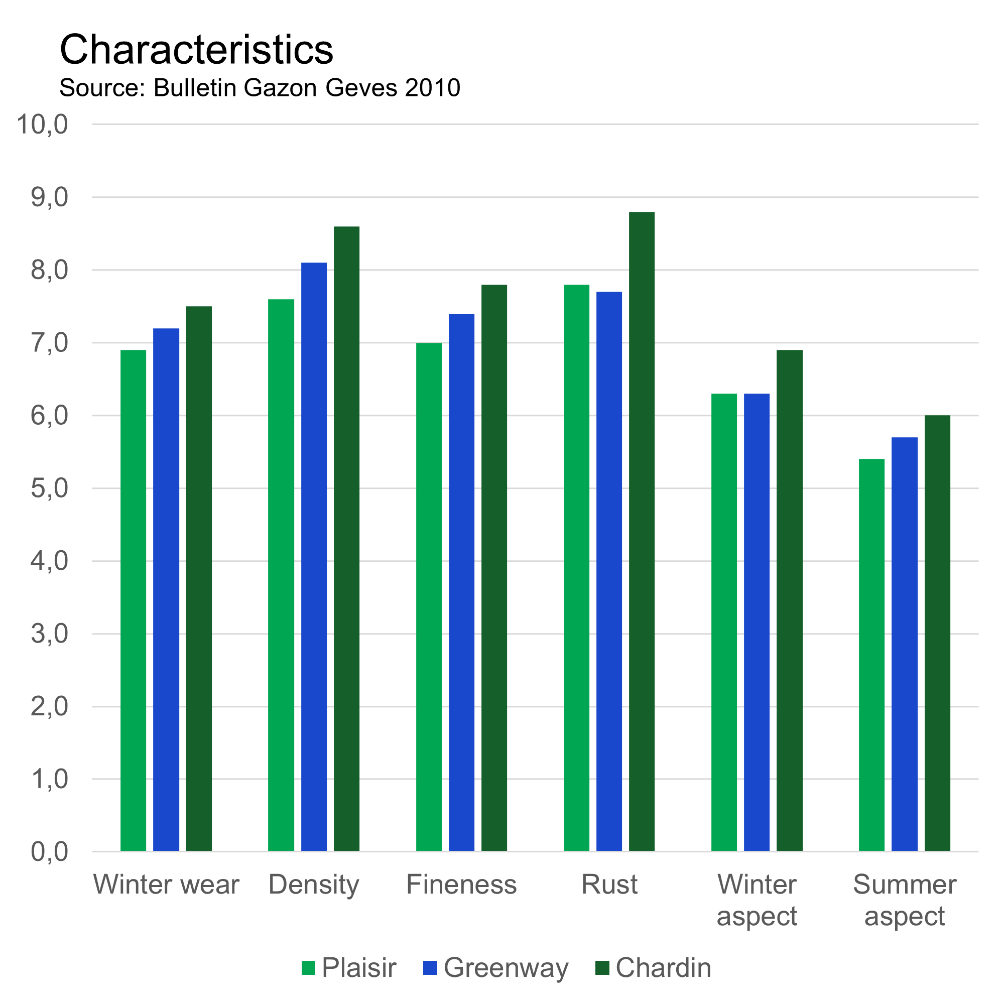Source: Bulletin Gazon Geves 2010| Plaisir | Greenway | Chardin | |