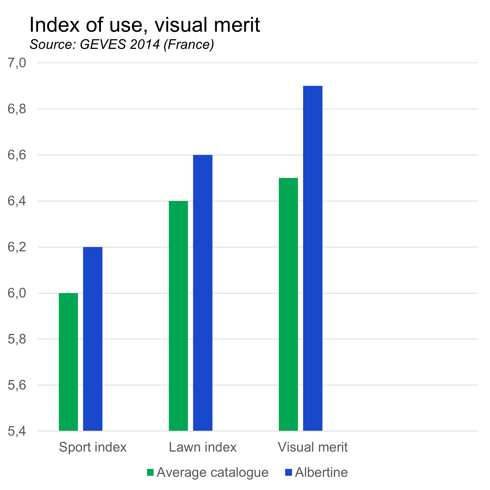 Whether it is for playgrounds, sport or ornamental purposes, the quality of Albertine moves it to the 1st place. It is the proof of homogeneous performance over the year, and that the visual merit is at a very high level.
