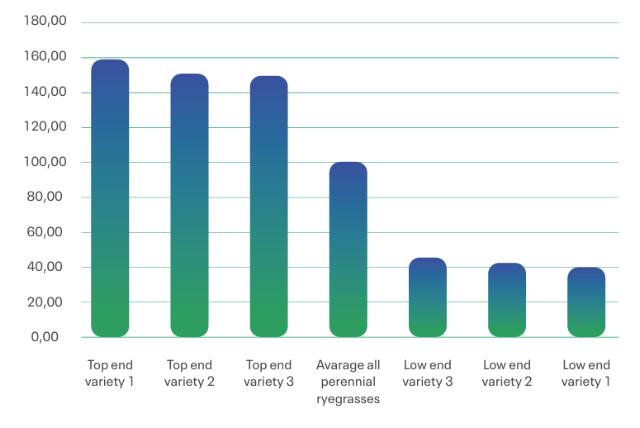 In the graph you can see the relative score of GLS resistance among perennial ryegrasses from DLF.
