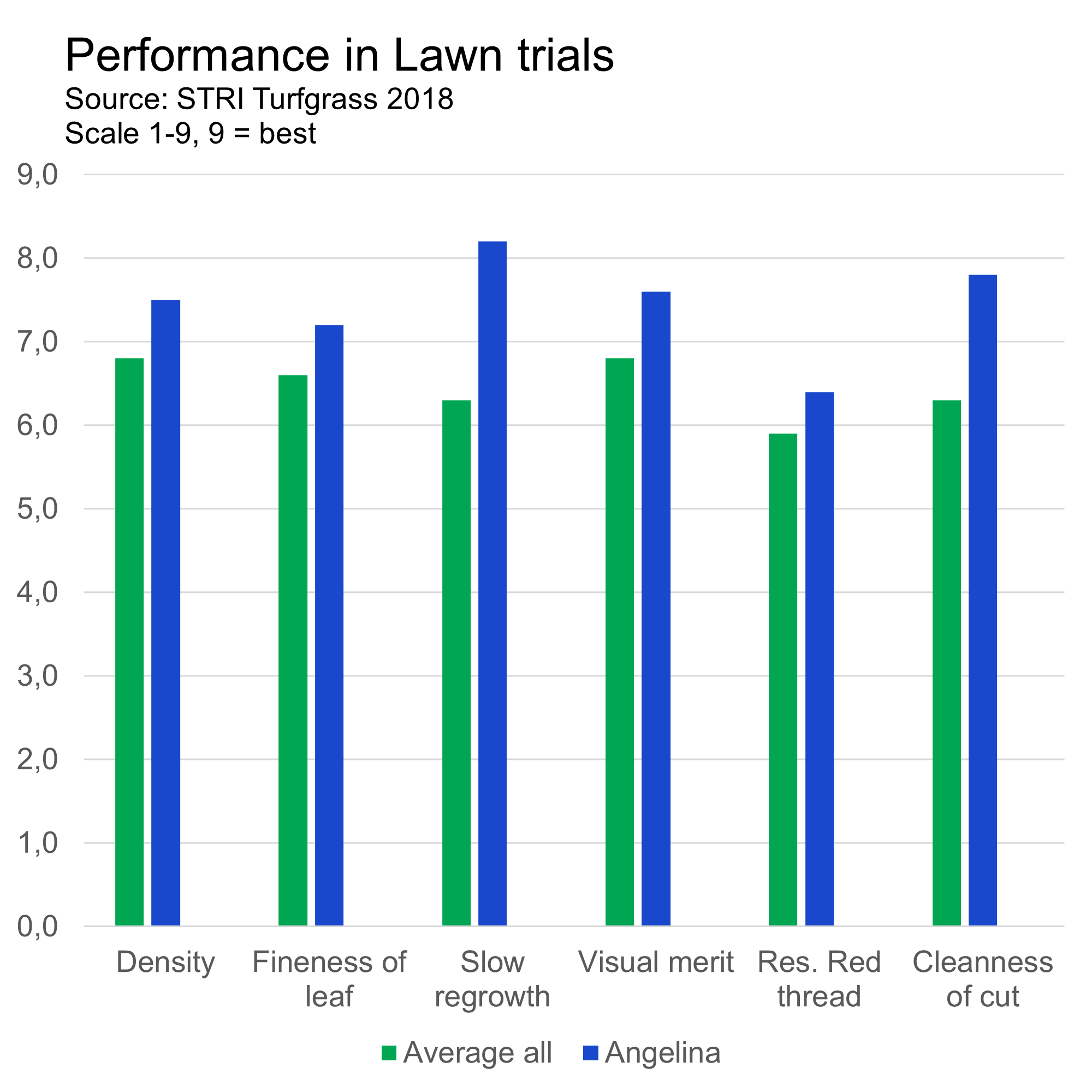 Source: STRI Turfgrass 2018Scale: 1-9, 9 = best