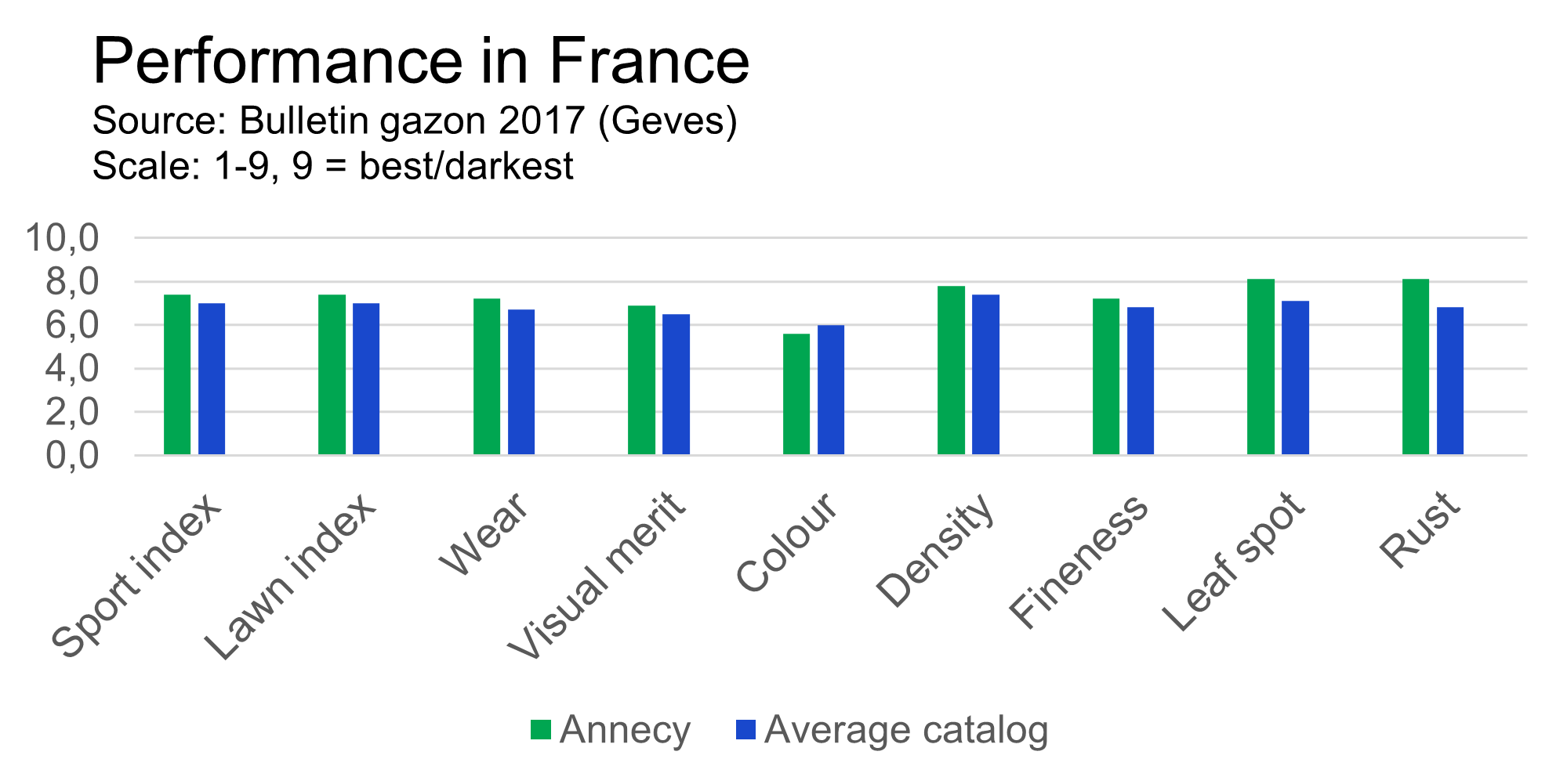 The French official trials is a severe filter for rust resistance and ANNECY passed the obstacle as one of best diploid varieties.