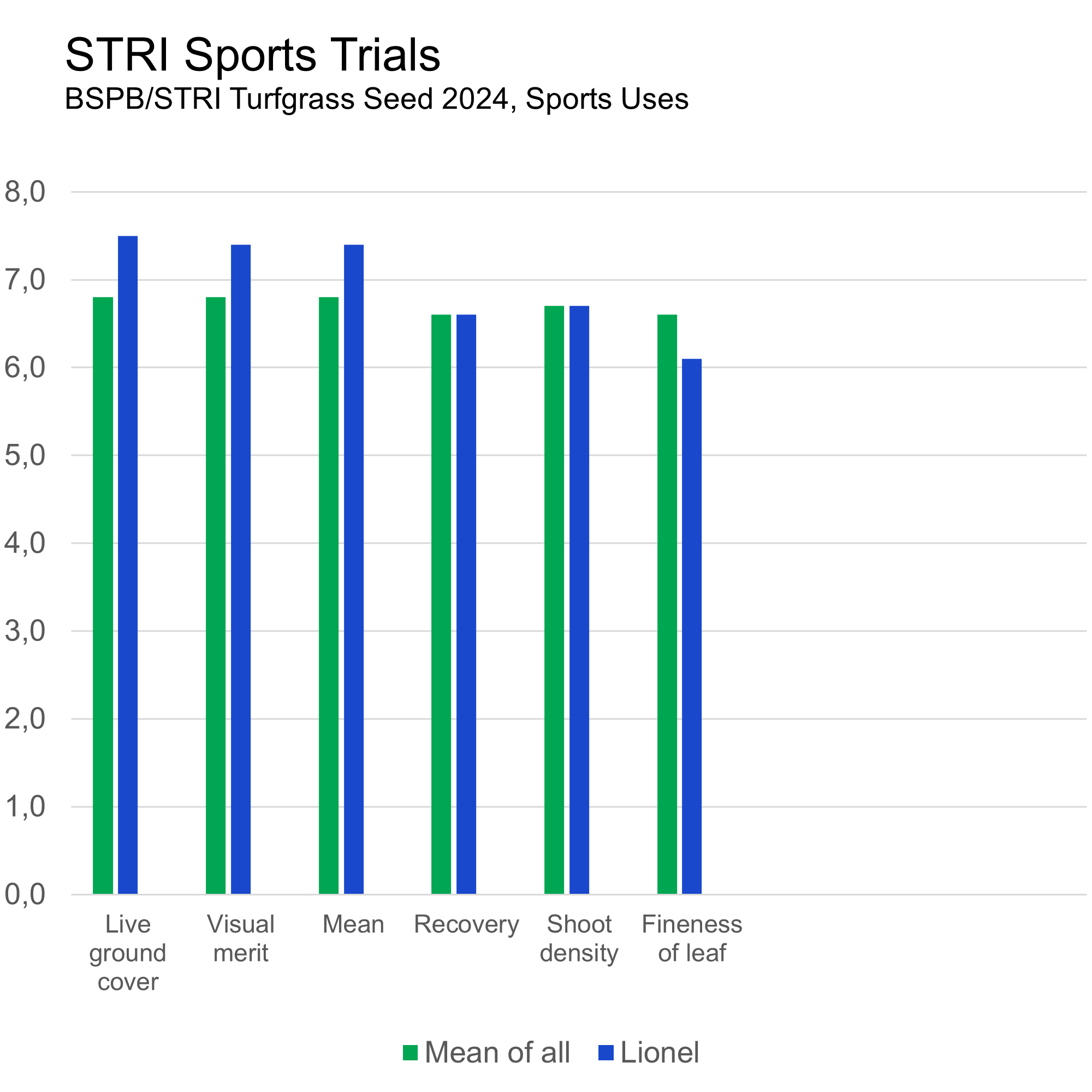BSPB/STRI Turfgrass Seed 2024, Sports Uses| Cultivar | Mean of All | Lionel |