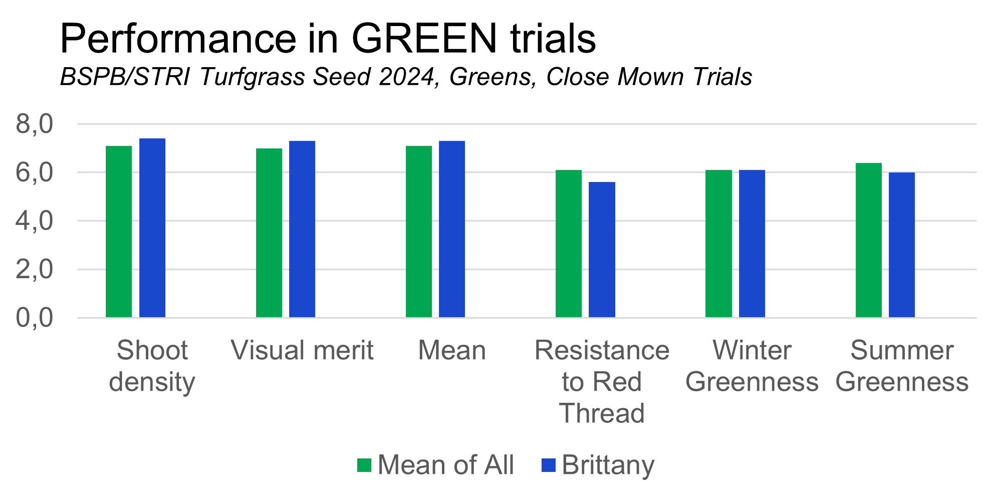 BSPB/STRI Turfgrass Seed 2024, Greens , Close Mown Trials| Mean of All | Brittany | |