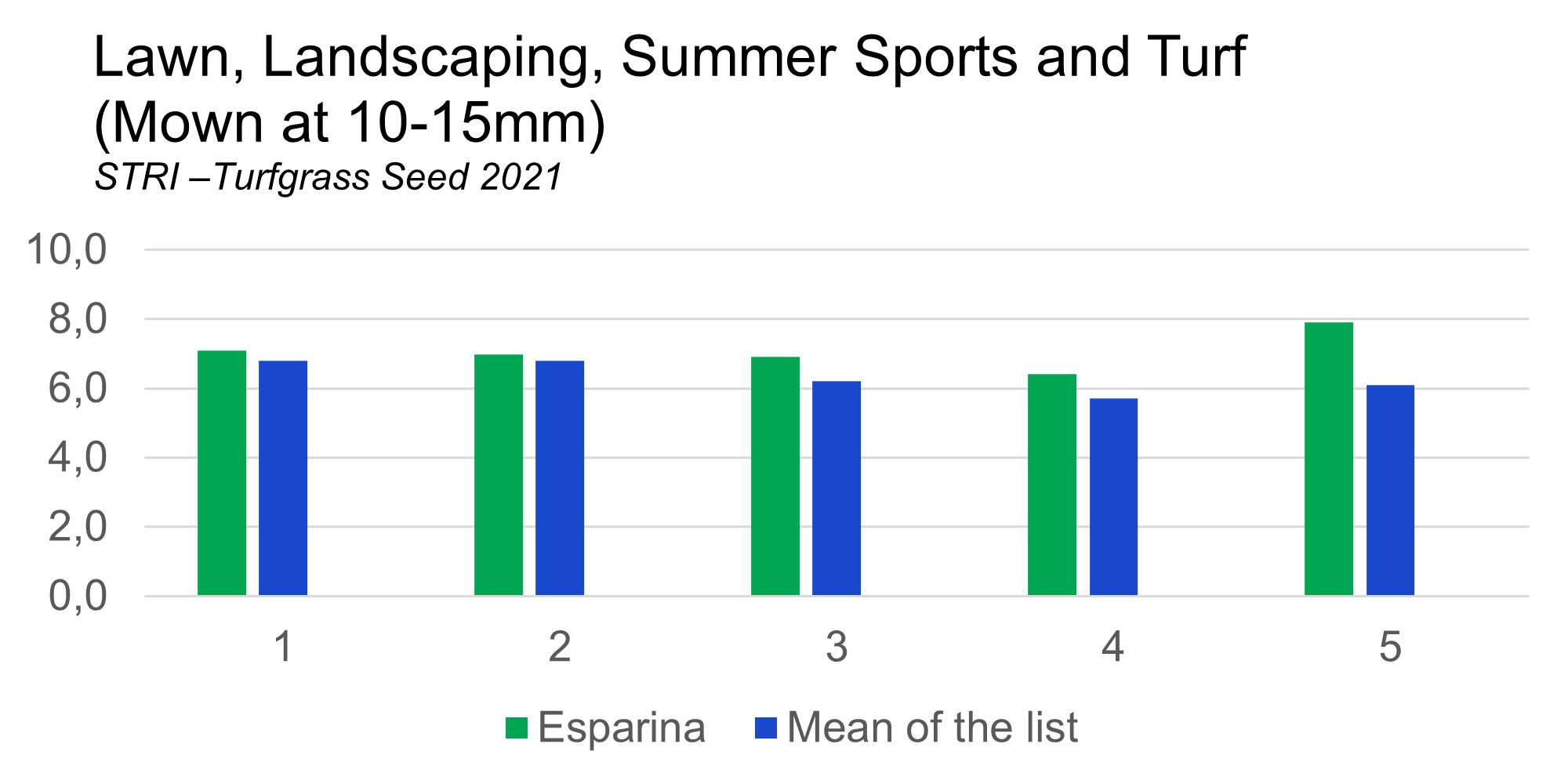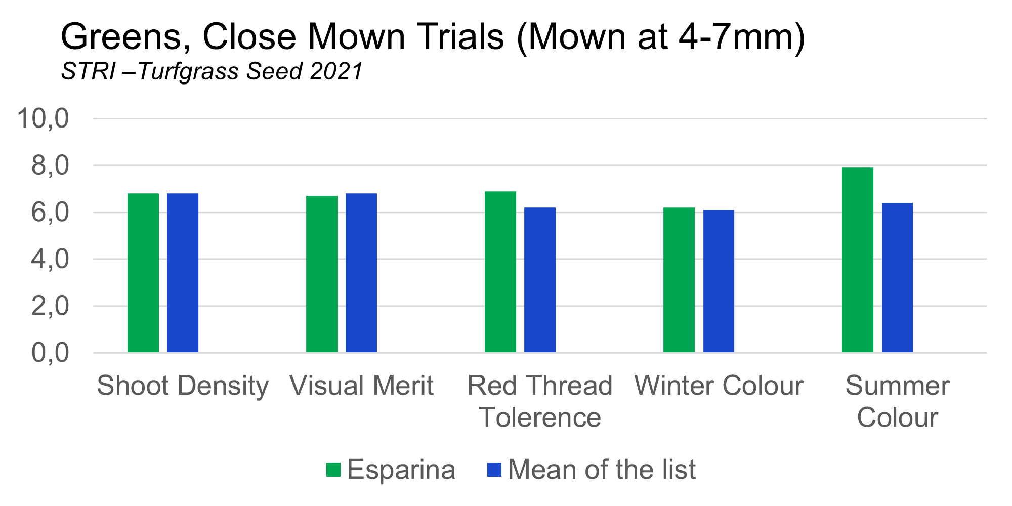 STRI - Turfgrass Seed 2021| Cultivar | Esparina | Mean of the list |
