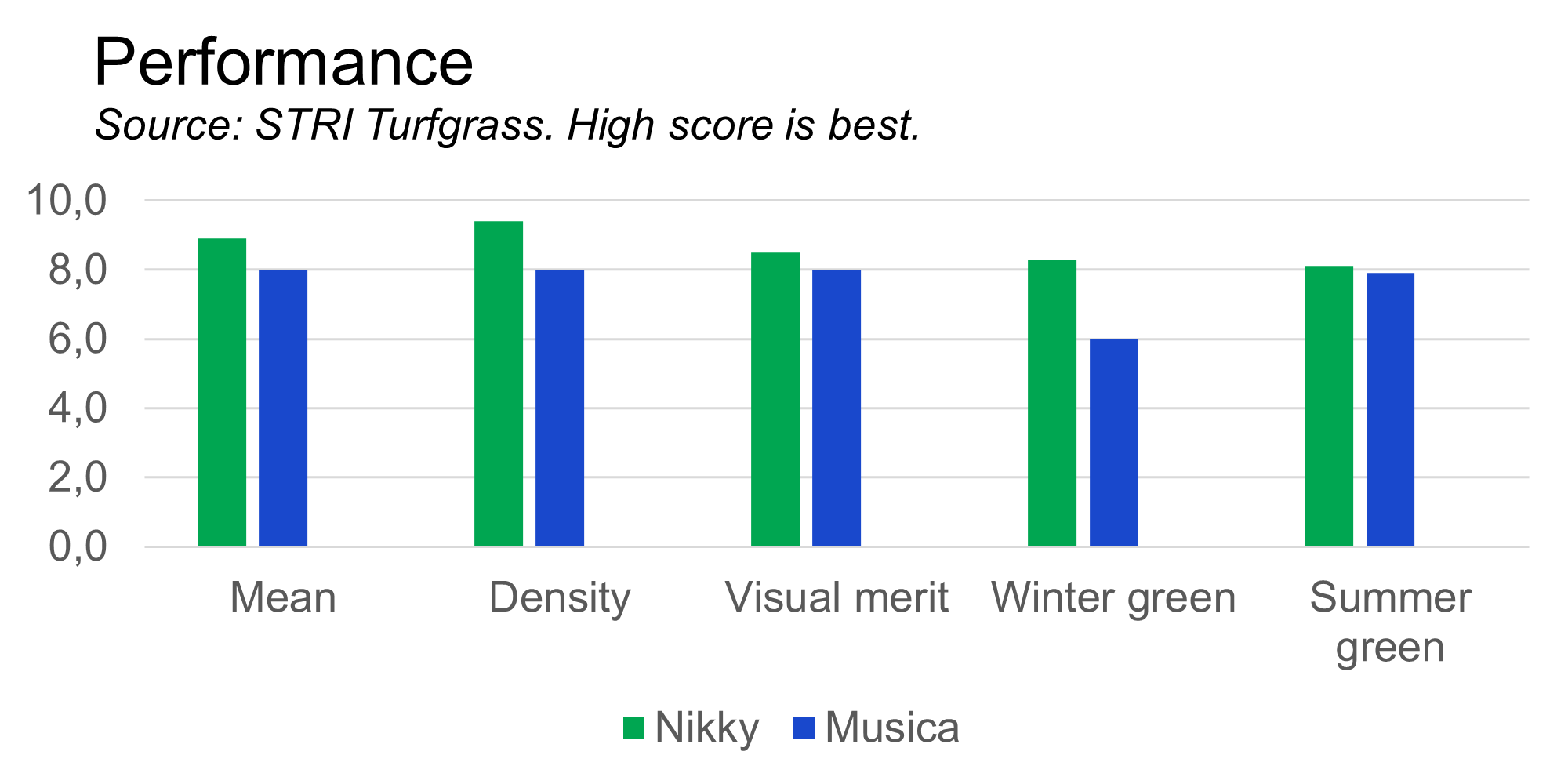 Source: STRI Turfgrass. High score is best.| Nikky | Musica | |