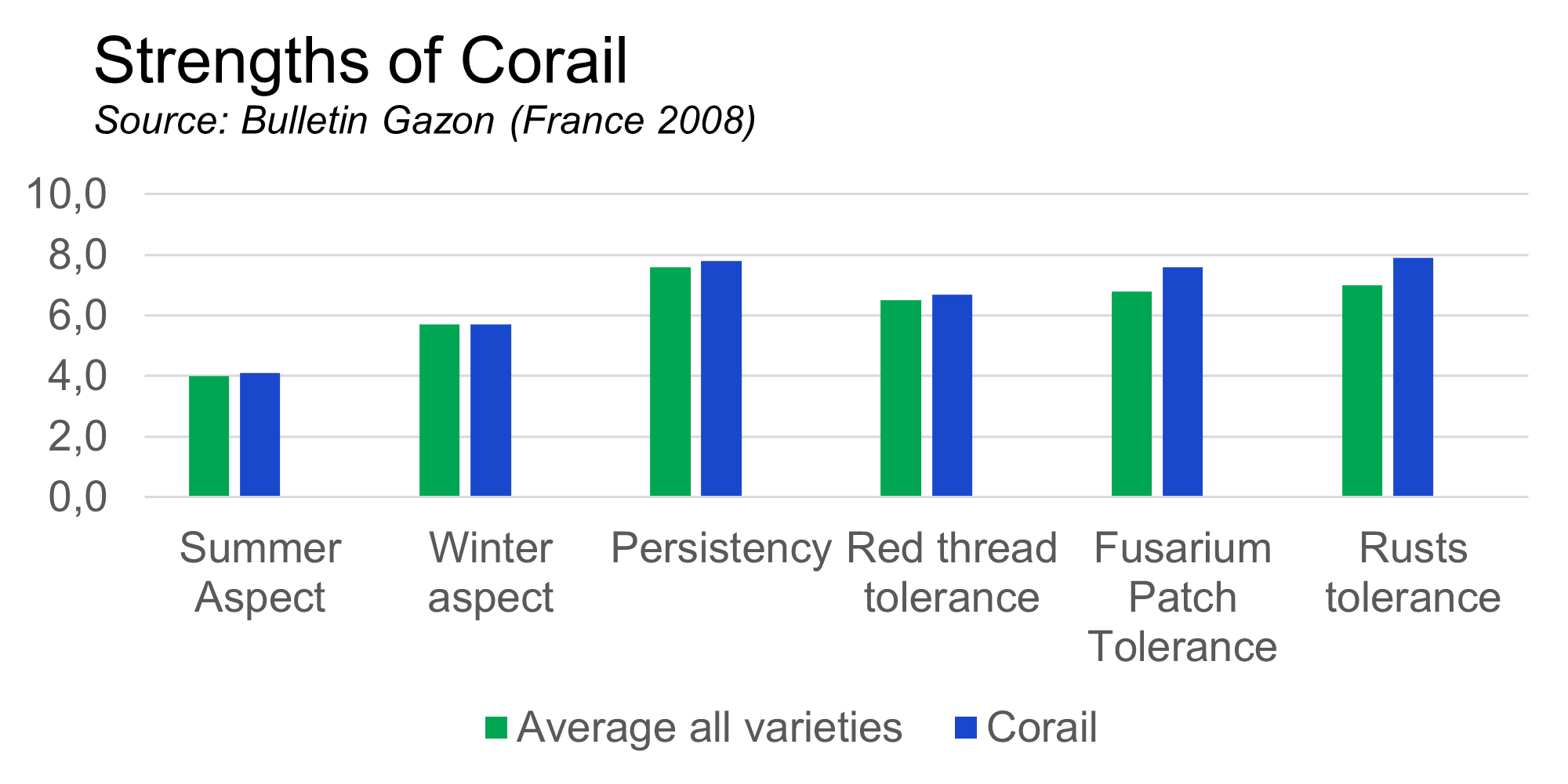 Source: Bulletin Gazon (France 2008)| Average all varieties | Corail | |