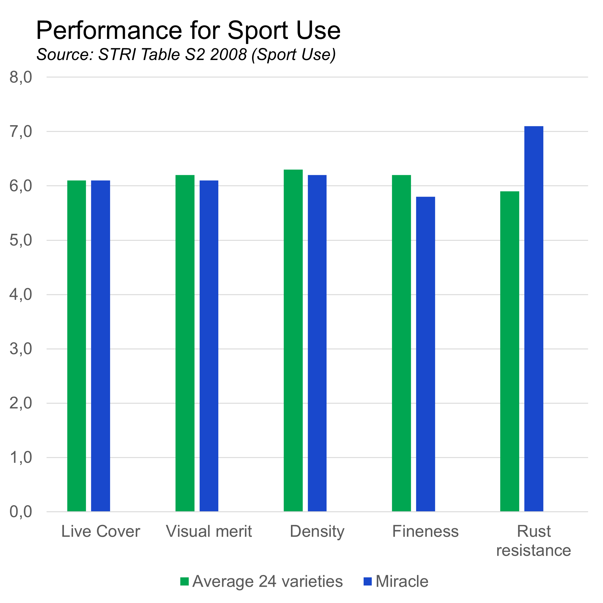 Source: STRI Table S2 2008 (Sport Use)| Average 24 varieties | Miracle | |