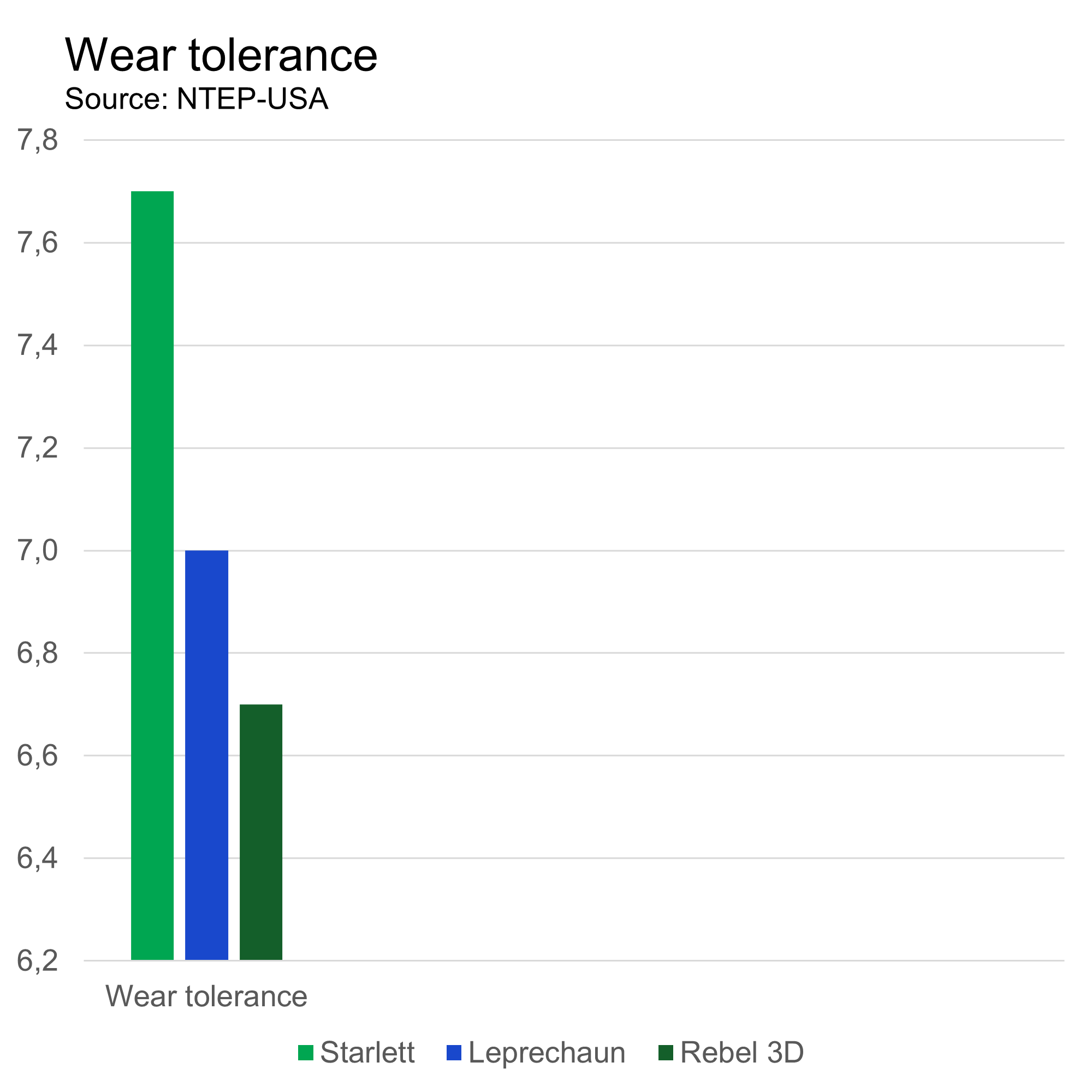 | Wear tolerance | 7,7 | 7 | 6,7 |