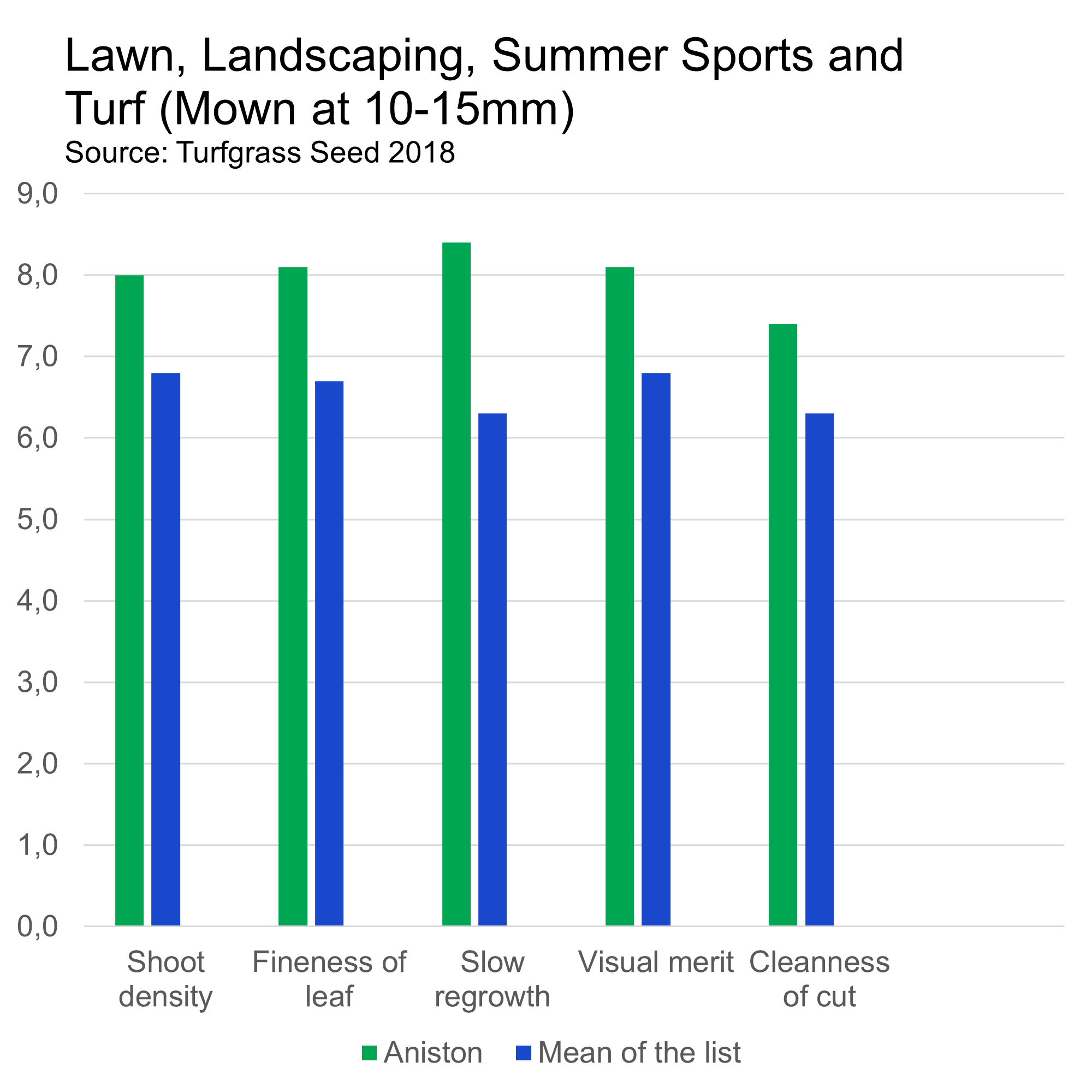 ANISTON has excellent all round appearence with no weakness in any of the main characters of a lawn type variety