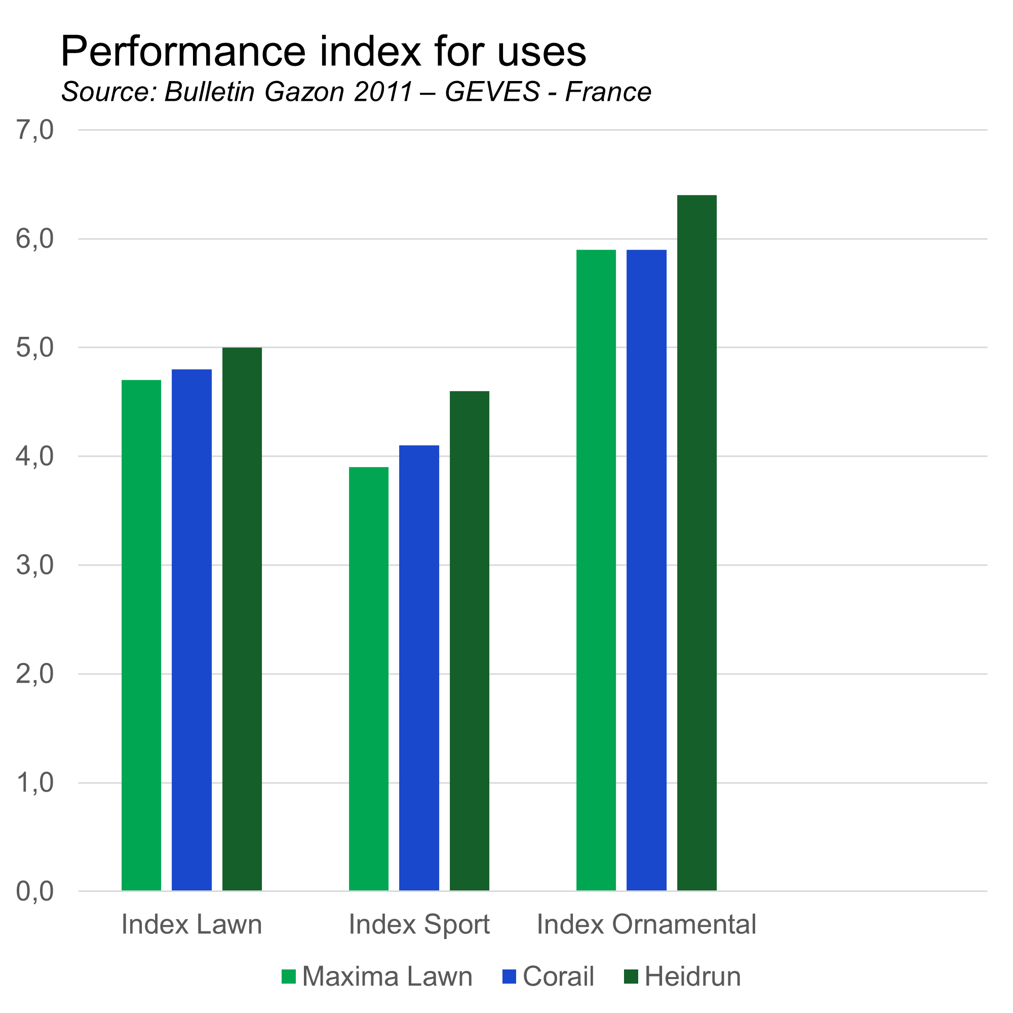 Source: Bulletin Gazon 2011 - GEVES - France| Maxima 1 | Corail | Heidrun | |