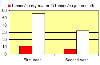 Source: Danish trials| Tonnes/ha dry matter | Tonnes/ha green matter | |