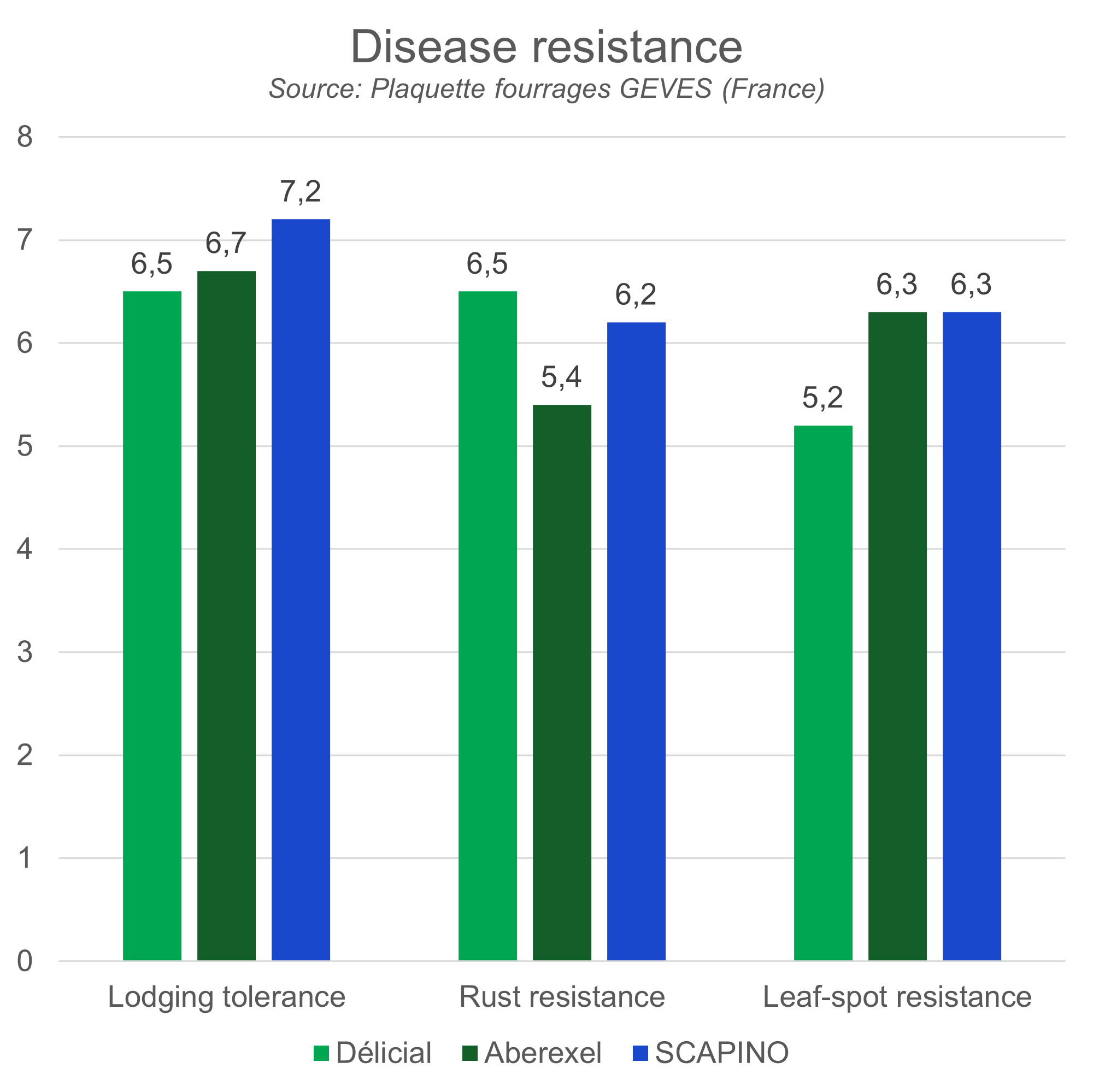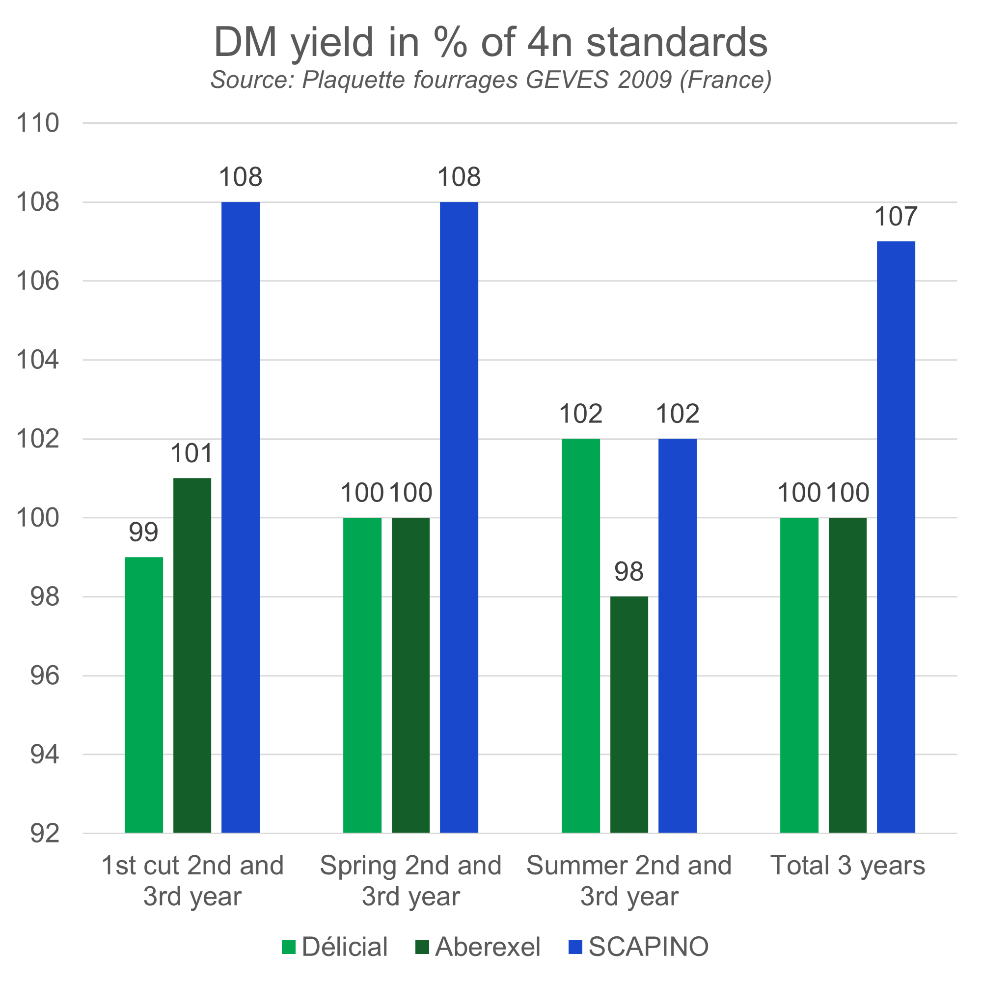 Source: Plaquette fourrages GEVES (France)| Délicial | Aberexel | Scapino | |