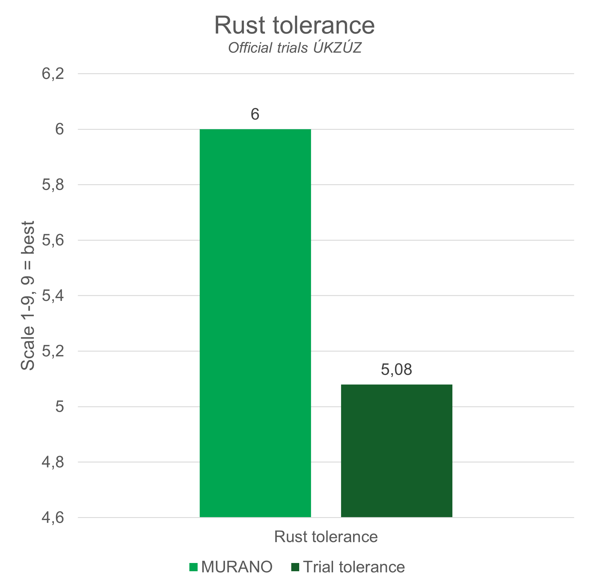 Disease-free feed is one of the parameters that determine the quality. MURANO was bred with this in mind, and the results can be seen. While others variety in official trials were scoring as low as 3,5/9, MURANO was holding strong at 6/9 in rusts tolerance!