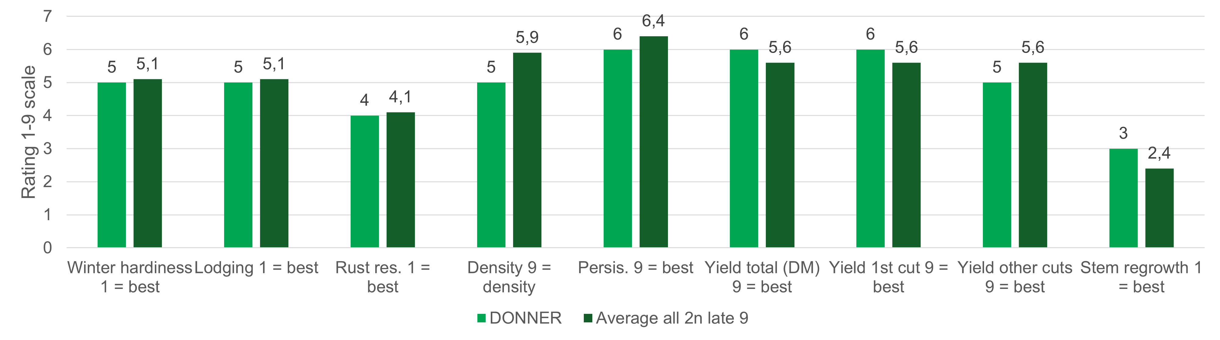 Source: BSA Beschreibende Sortenliste 2020| Variety | DONNER | Average all 2n late 9 |