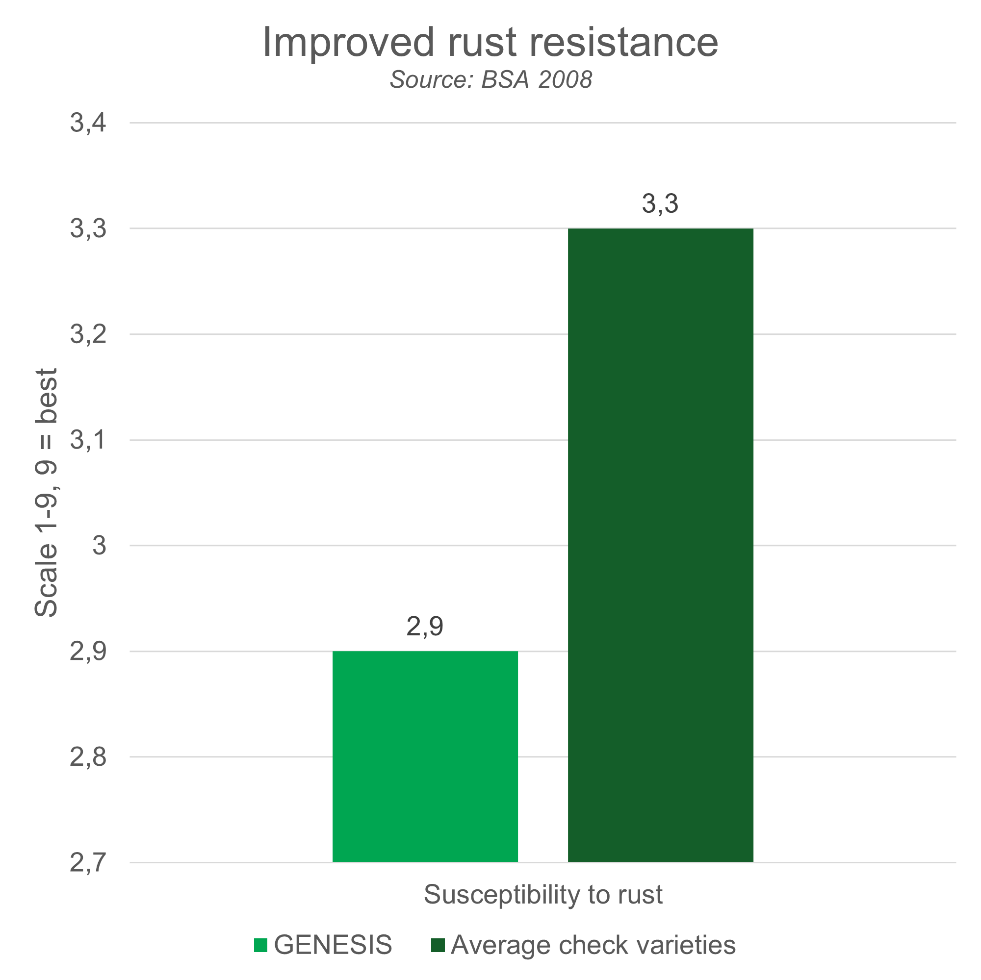 | susceptibility to rust | 2,9 | 3,3 |
