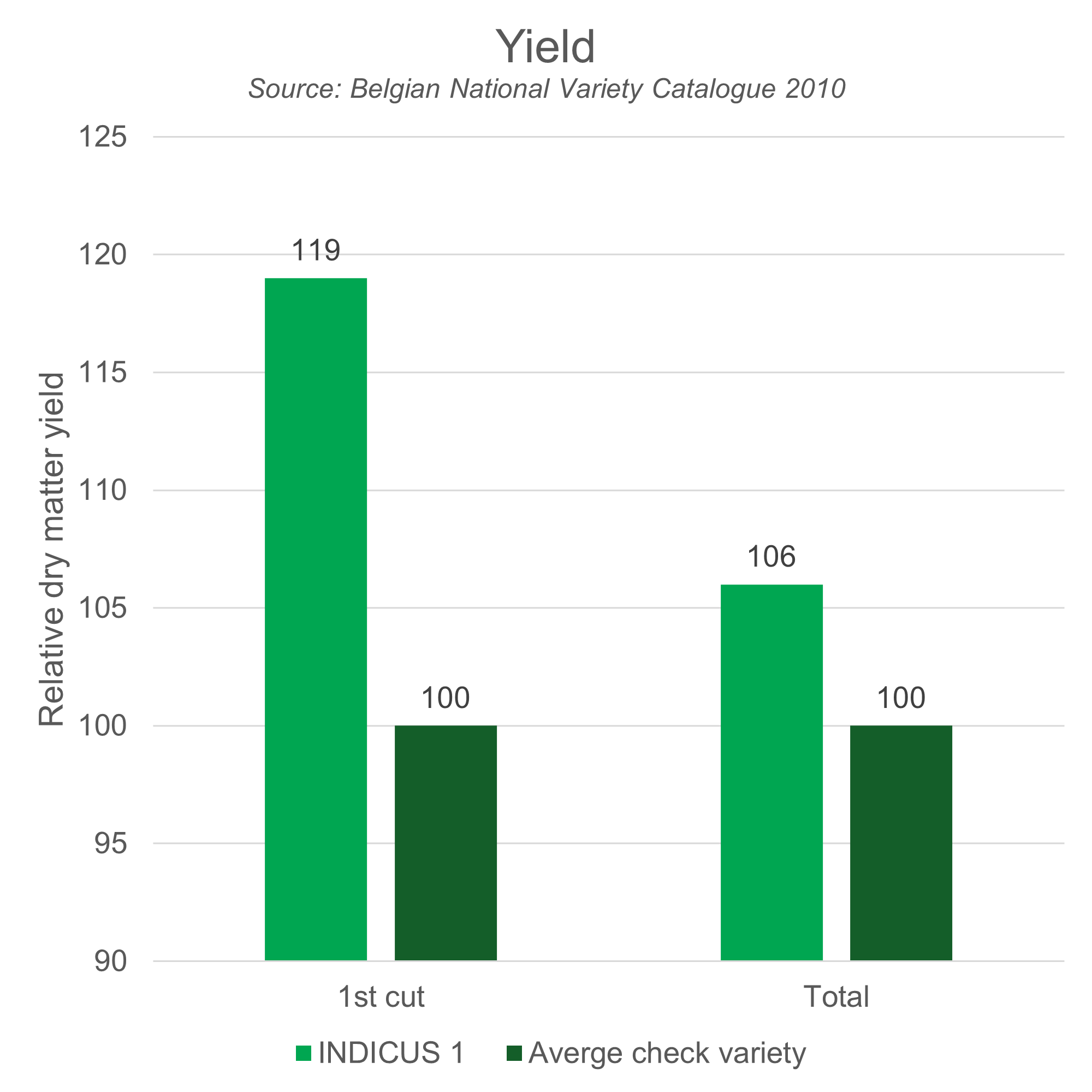 INDICUS 1 is convincing as well with further agro-ecological qualities: A lot of herbage, even after second regrowth, provides highest quality which is shown in the forage quality of silage or in the pasture growth.