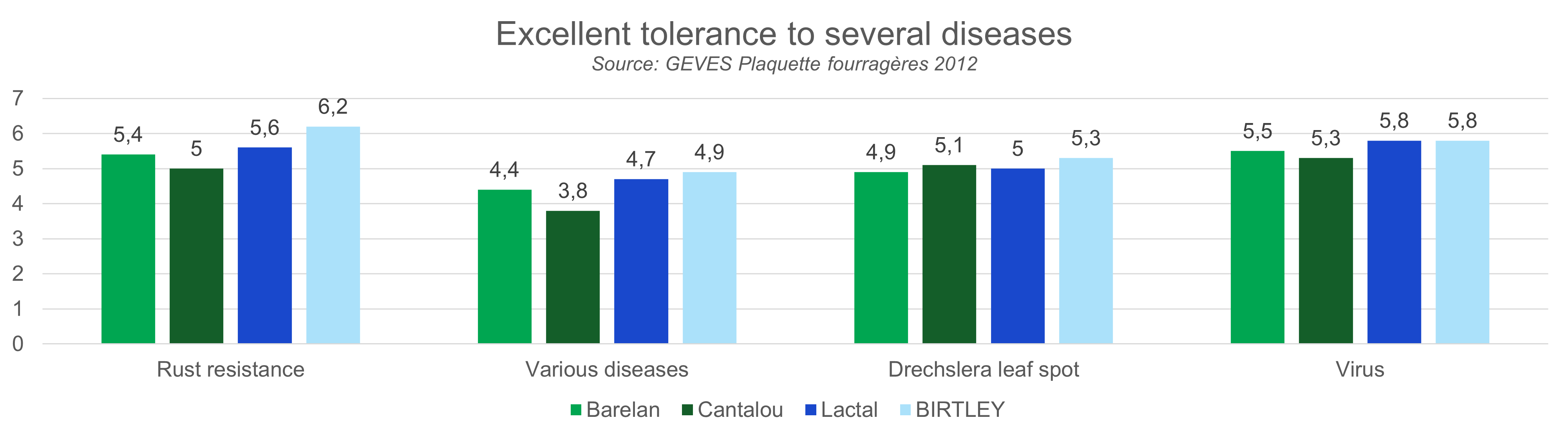 Source: GEVES Plaquette fourragères 2012| Barelan | Cantalou | Lactal | Birtley | |