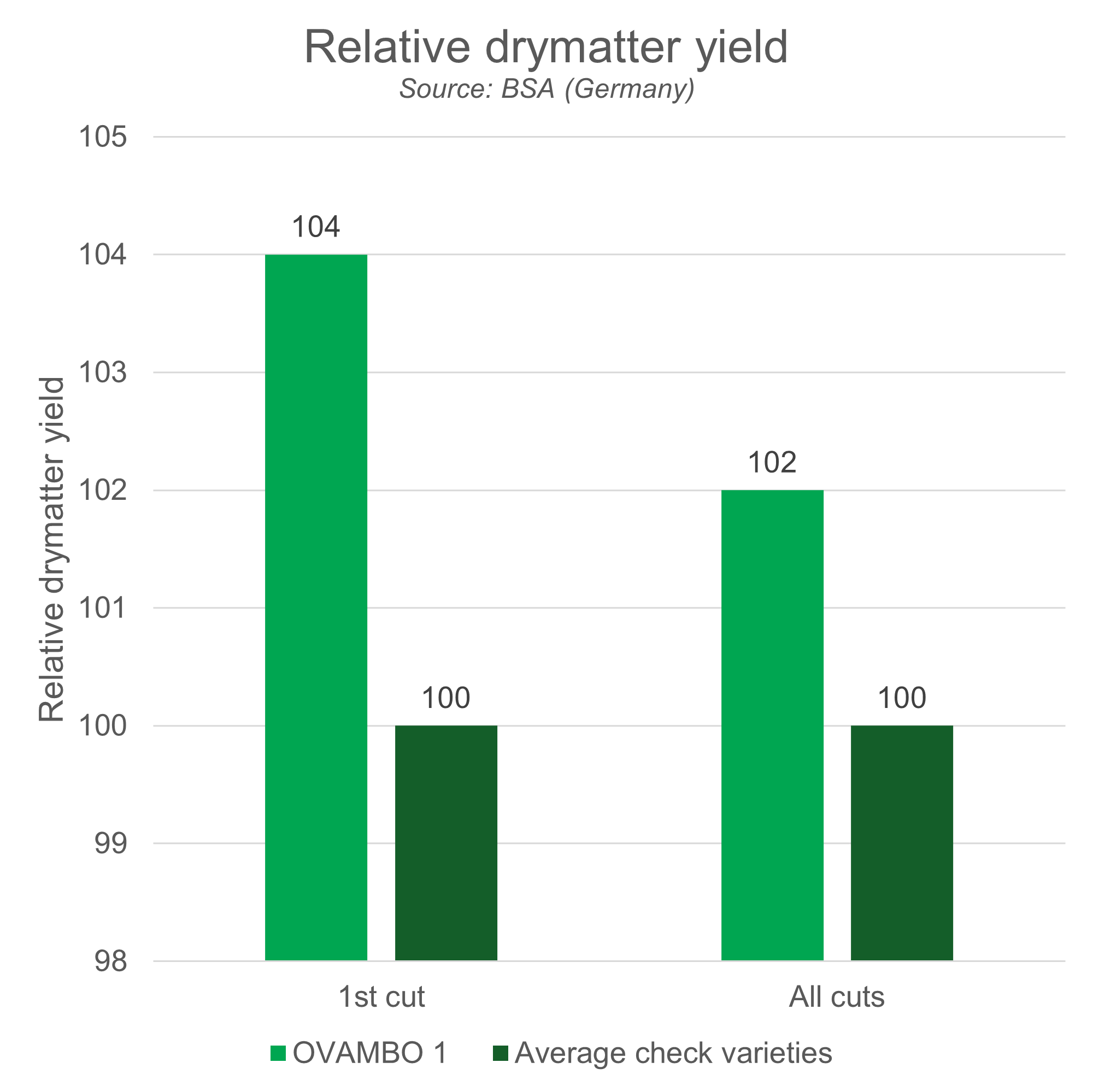 Source: BSA (Germany)| Drymatter yield | Ovambo 1 | Average check varieties |