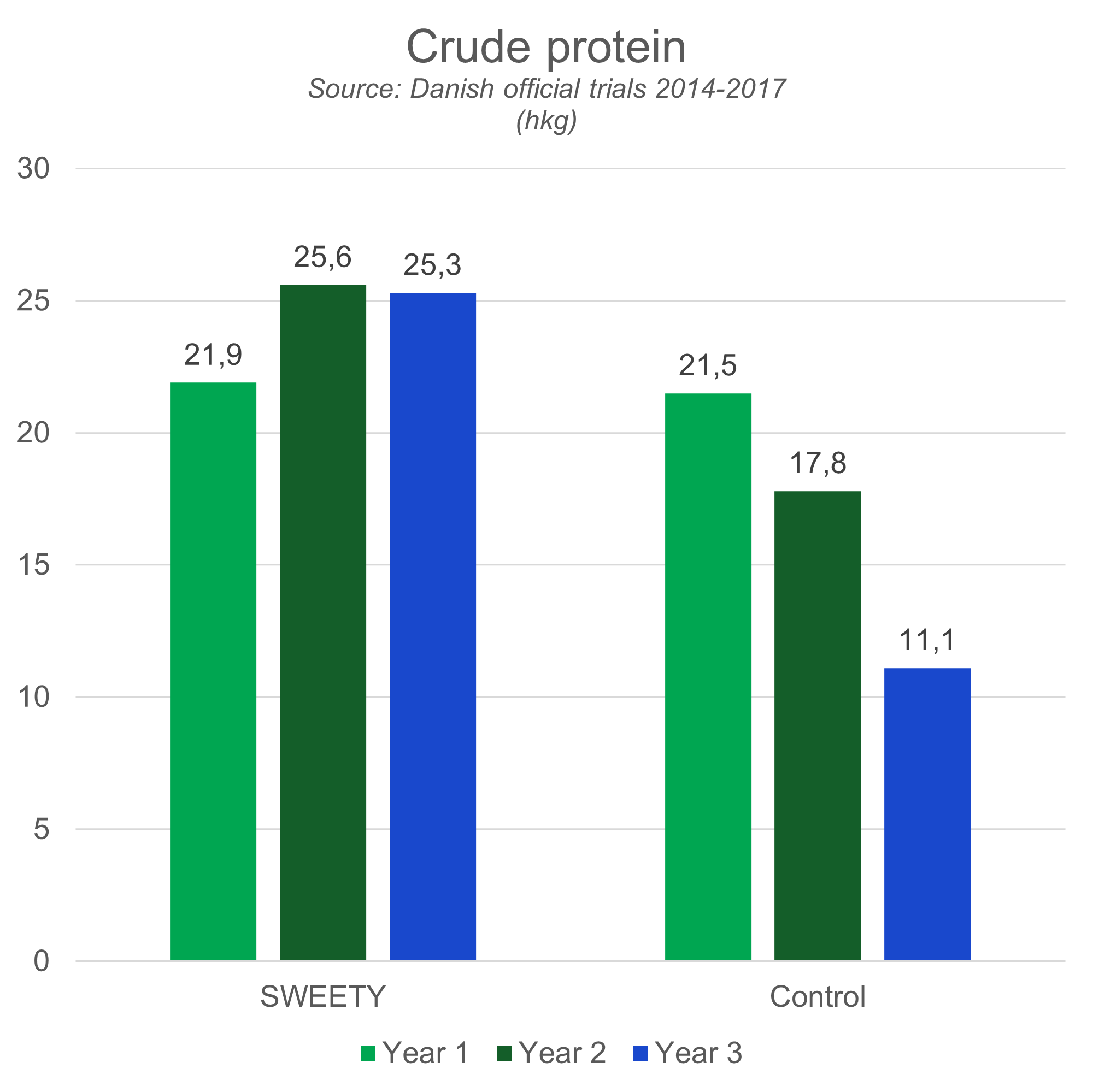 | Crude protein (hkg) | Year 1 | Year 2 | Year 3 |