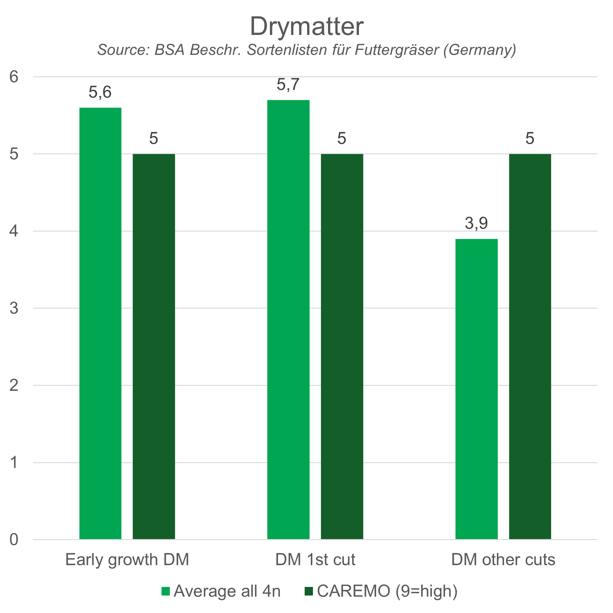 Source: BSA Beschr. Sortenliste für Futtergräser (Germany)| Average all 4n | Caremo (9=high) | |