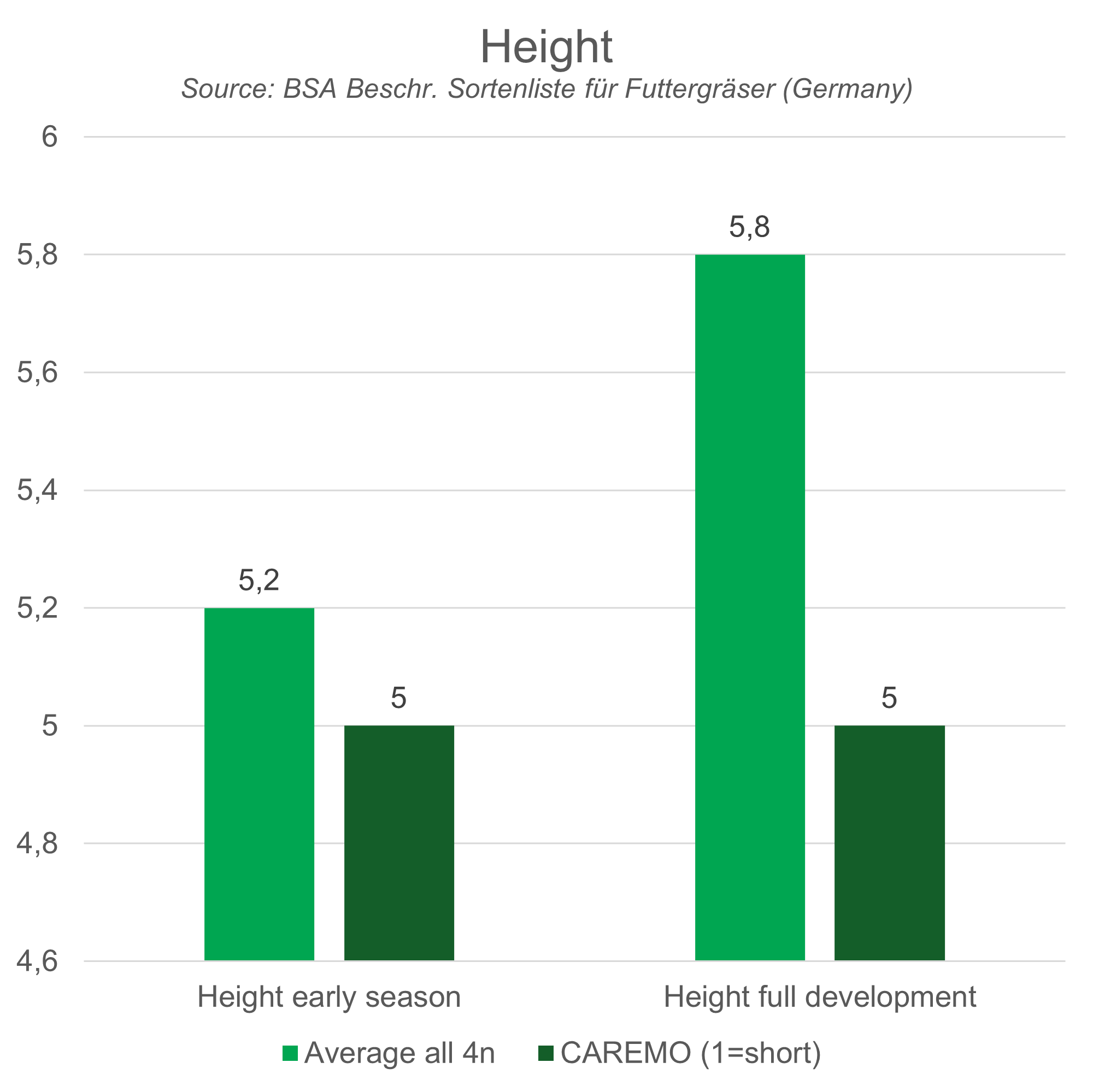 Source: BSA Beschr. Sortenliste für Futtergräser (Germany)| Average all 4n | Caremo (1=short) | |