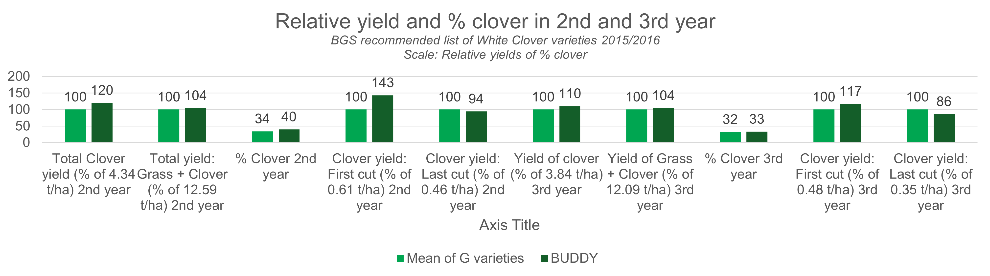 Source: BGS RECOMMENDED LIST OF WHITE CLOVER VARIETIES 2015/2016| Mean of G varieties | Buddy | |