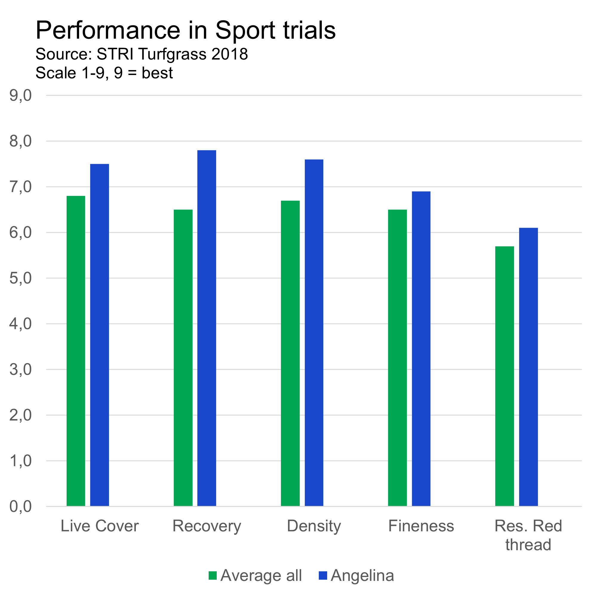 Source: STRI Turfgrass 2018Scale: 1-9, 9 = best