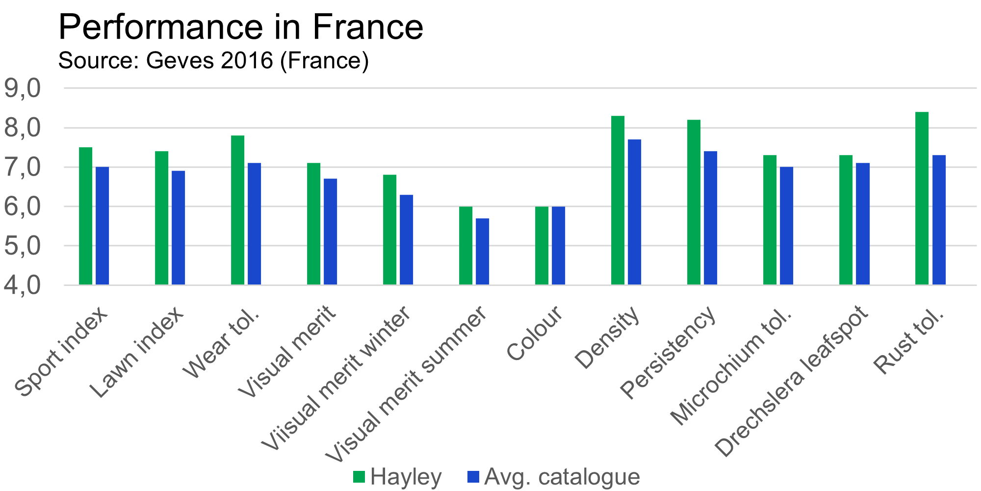 Hayley is tolerant to rust, Microdochium and leaf spot.