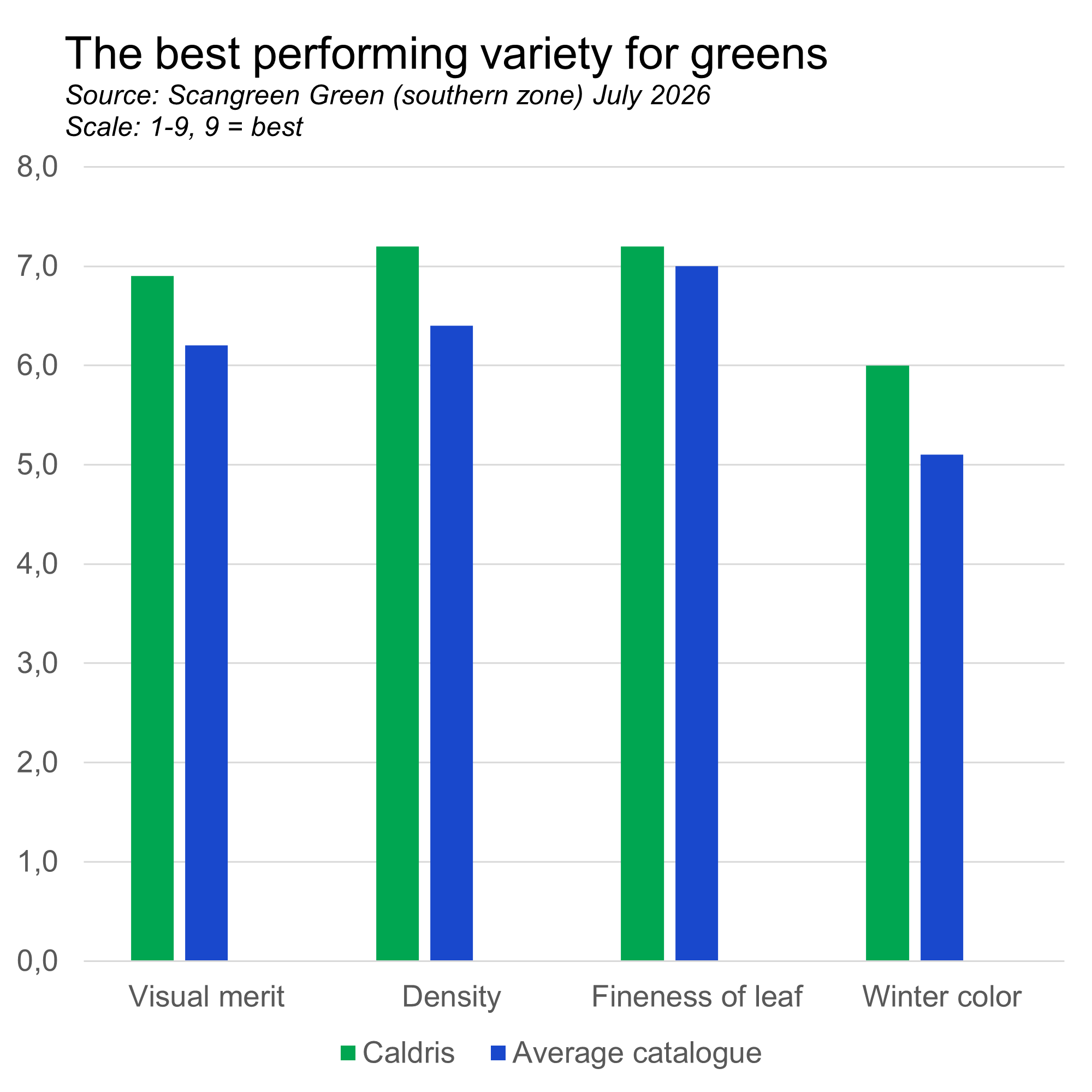 Caldris has been the best performing variety for both the "South" and "North" sites in the Scandinavian Scangreen trials.