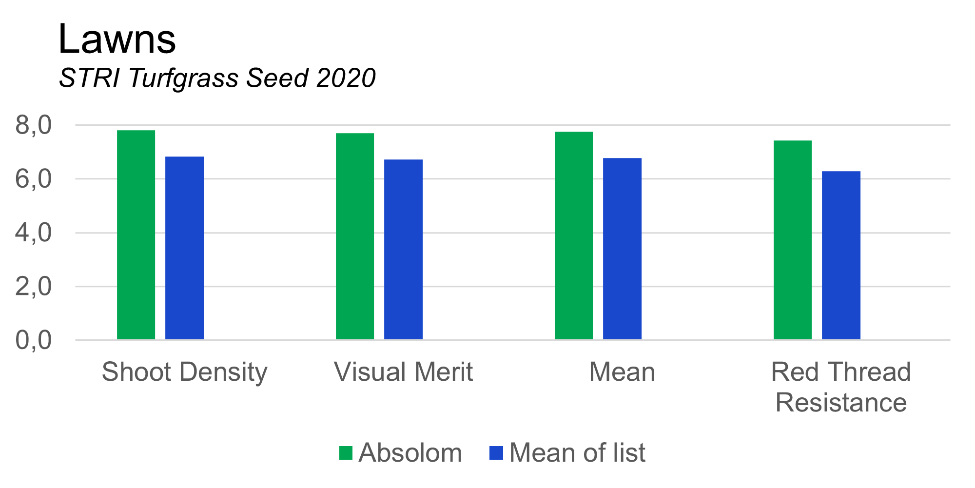 ABSOLOM has very good density, producing a fine, weed free sward with an excellent appearance and reducing the need for maintenance.