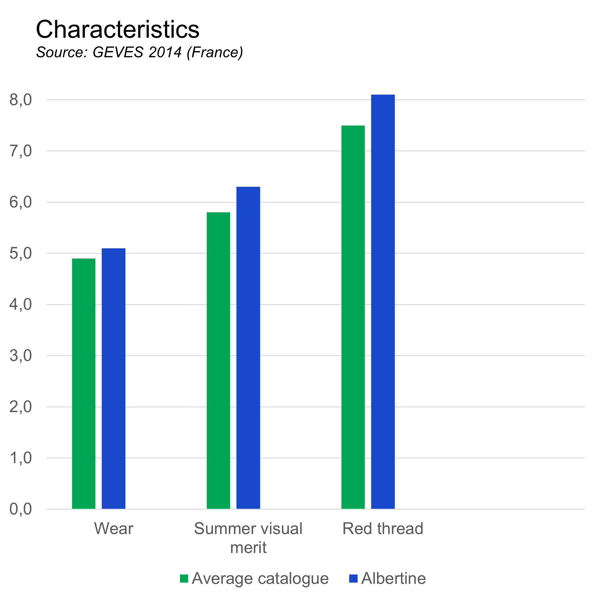 Whether it is for playgrounds, sport or ornamental purposes, the quality of Albertine moves it to the 1st place. It is the proof of homogeneous performance over the year, and that the visual merit is at a very high level.