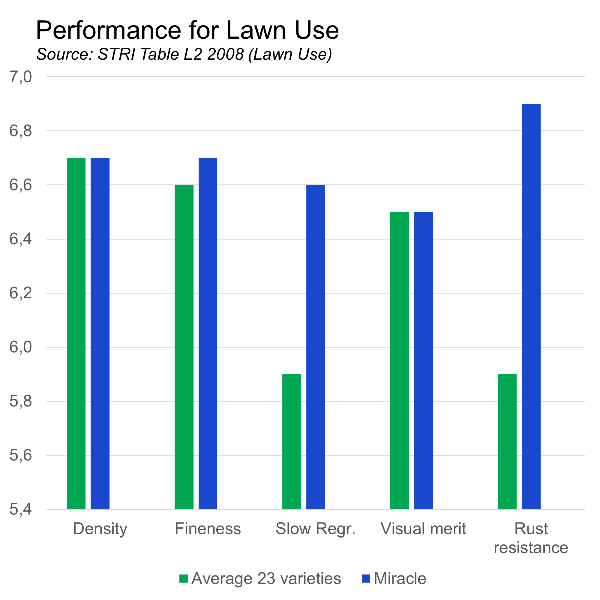 Source: STRI Table L2 2008 (Lawn Use)| STRI L2 2008 | Average 23 varieties | Miracle |