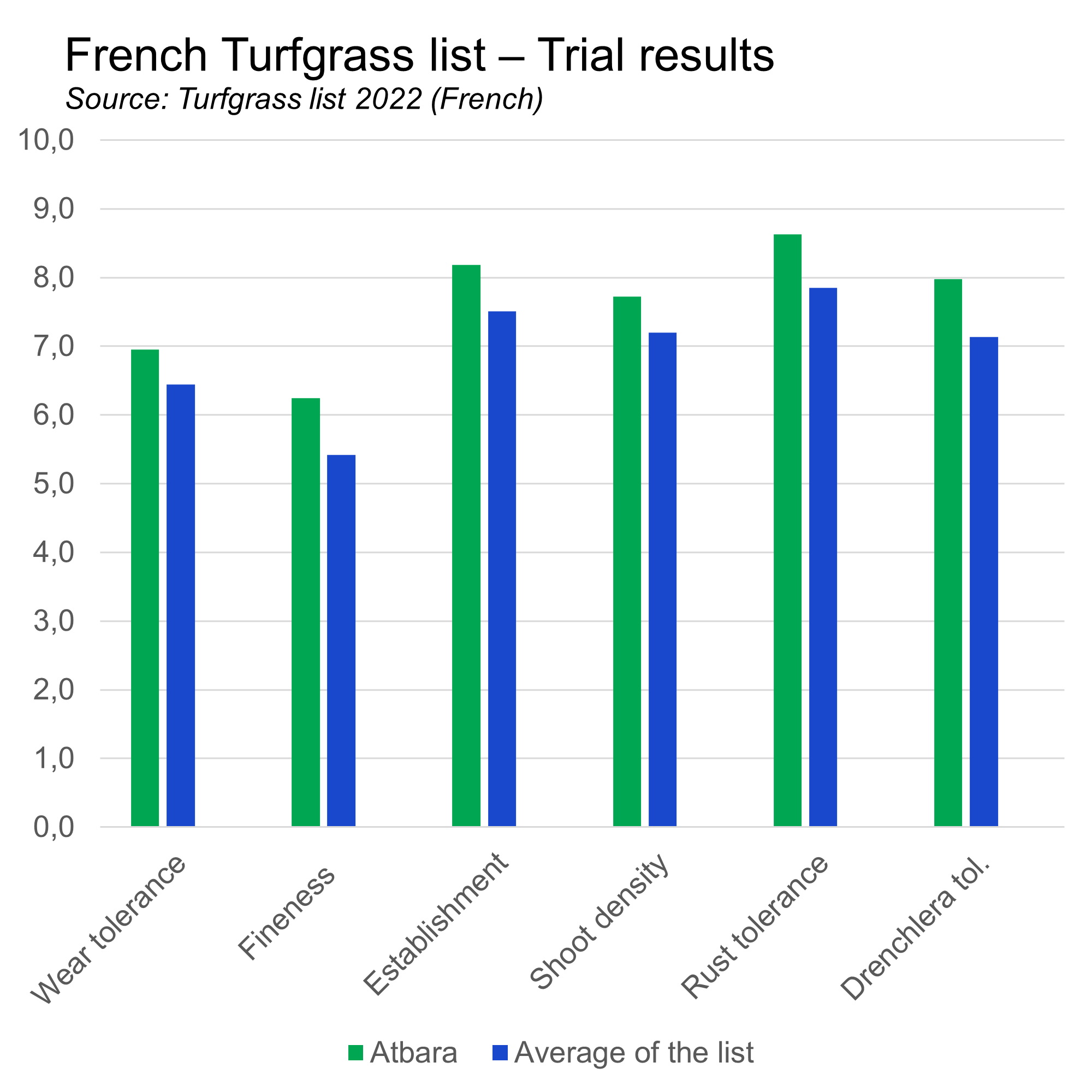 Turfgrass list 2022 (French)| Atbara | Average of the list | |