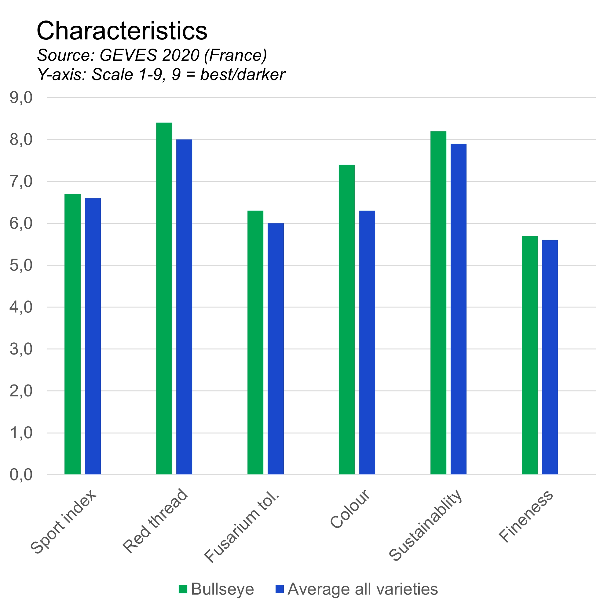 Source: GEVES 2020 (France)Y-axis: Scale 1-9, 9 = best/darker