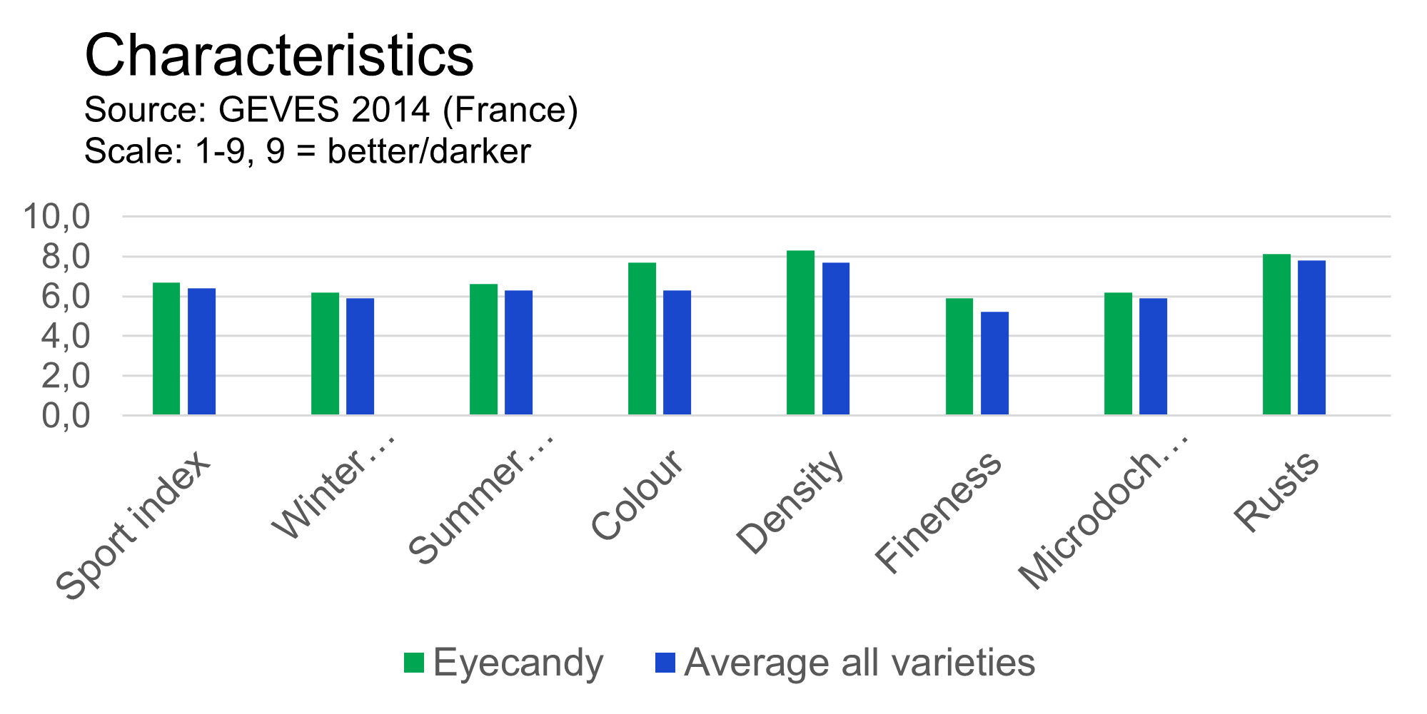 Source: GEVES 2014 (France)Y-axis: Scale 1-9, 9 = best/darker