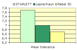 | Wear tolerance | 7,7 | 7 | 6,7 |